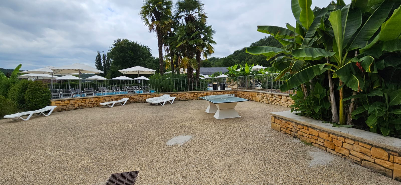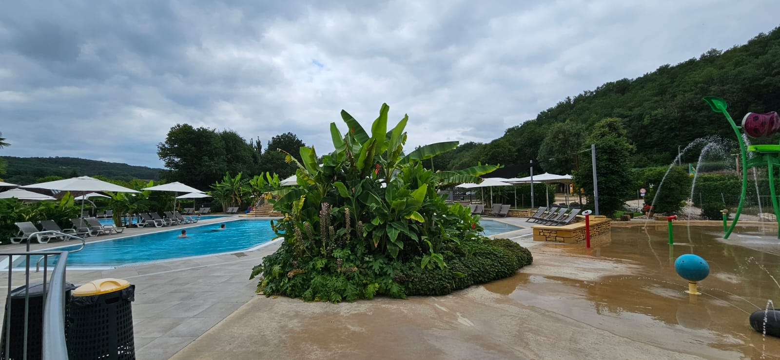 Camping 5 étoiles, trés fleuri et arboré, grand zone aquatique avec 3 piscines, dont une couverte, jeux pour enfants, Sauna, Hammam, Bain de soleil. Equipements sportifs, terrain de foot, city stade, quad à pédales en location, Bar-Restaurant, Supérette ...