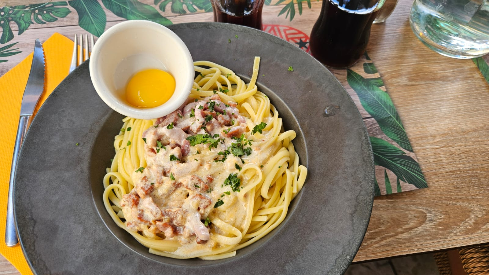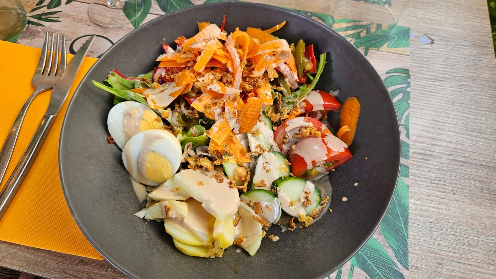 Que ce soit des plats typiques, burgers, pizzas, salades, ou des spécialités locales, chacun y trouvera son compte ! Le service est sympa et rapide, les plats sont copieux, agréables à l’œil et au palais. La terrasse est charmante, décorée, au bord de l'eau, bien ombragée !